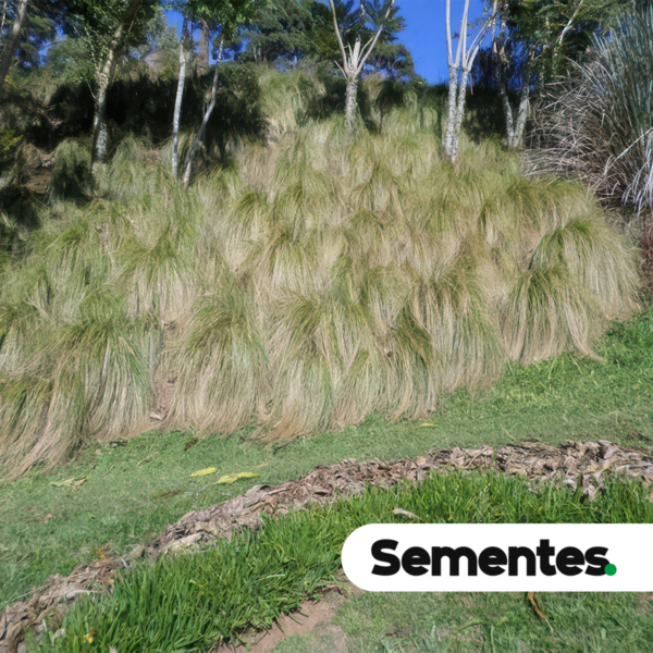 A colheita das sementes deve ser feita quando as inflorescências estiverem secas e as sementes começarem a se soltar espontaneamente. Nessa fase, adquirem uma coloração palha dourada e apresentam suas características aristas visíveis e bem formadas. A coleta manual é recomendada, com o corte das hastes florais e posterior debulha e peneiramento leve para separação das sementes viáveis.