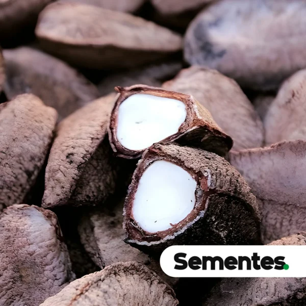A folhagem é composta por folhas simples, grandes, de formato oblongo e com uma textura coriácea. As flores, embora relativamente grandes (cerca de 3 cm), parecem pequenas em meio à imensidão da árvore. Elas são de cor creme a amarelada e possuem uma estrutura complexa, com seis pétalas e um capuz de estames (o androceu) que se curva sobre o centro da flor, uma característica da família Lecythidaceae. O fruto, no entanto, é o seu elemento mais icônico e famoso: o ouriço. O ouriço é um pixídio, um tipo de cápsula lenhosa, de formato globoso, que pode medir de 10 a 15 cm de diâmetro e pesar até 2 quilos. Sua casca é extremamente dura e espessa (até 1,5 cm), uma verdadeira fortaleza de madeira. O ouriço é funcionalmente indeiscente, o que significa que, embora possua uma pequena abertura (opérculo), ela é pequena demais para que as sementes saiam sozinhas. A queda de um ouriço maduro, de uma altura de 50 metros, é um evento perigoso e um dos sons mais característicos da floresta. Dentro desta arca do tesouro, encontram-se de 10 a 25 sementes, as nossas amadas castanhas. As sementes (que botanicamente são as castanhas) são de formato triangular e se encaixam perfeitamente umas nas outras, como os gomos de uma laranja. Cada castanha é protegida por sua própria casca lenhosa e rugosa, e em seu interior, guarda a amêndoa branca, oleosa e nutritiva que é um dos maiores presentes da Amazônia para o mundo.