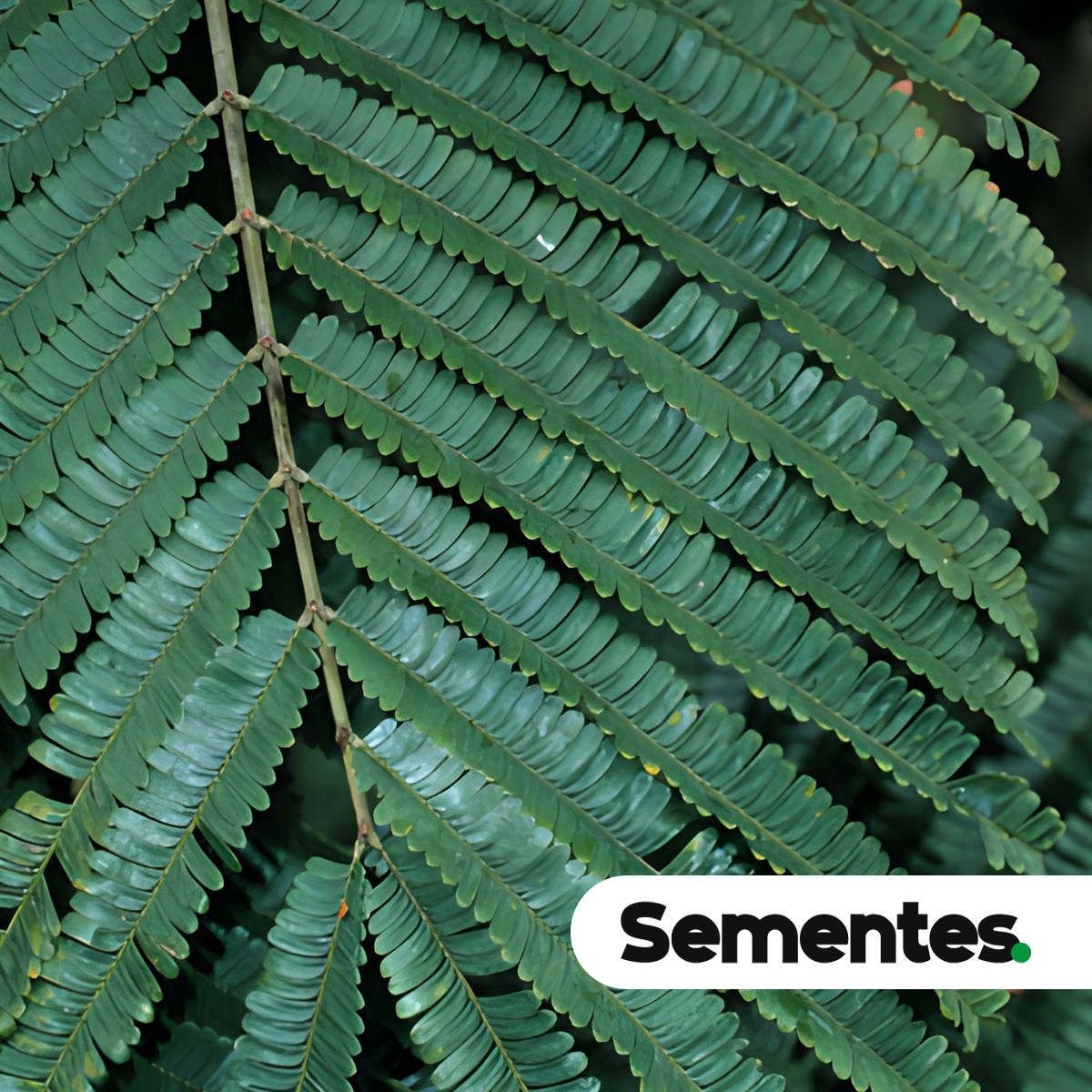 A folhagem é de uma delicadeza que contrasta com a imensidão da árvore. As folhas são bipinadas e muito grandes, podendo atingir mais de 50 cm de comprimento. Elas são “multijugadas”, ou seja, compostas por um grande número de pares de pinas, e cada pina, por sua vez, é dividida em dezenas de folíolos minúsculos. O resultado é uma folhagem extremamente fina, de aparência plumosa e delicada, que se assemelha à de uma samambaia gigante e que cria uma sombra leve e rendilhada.